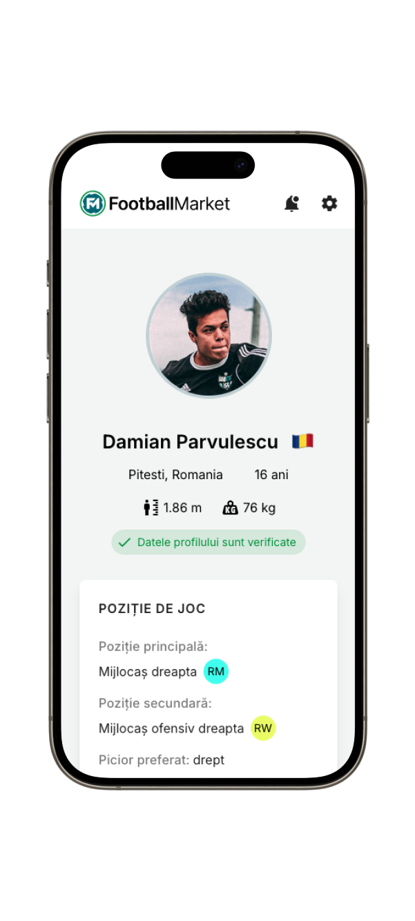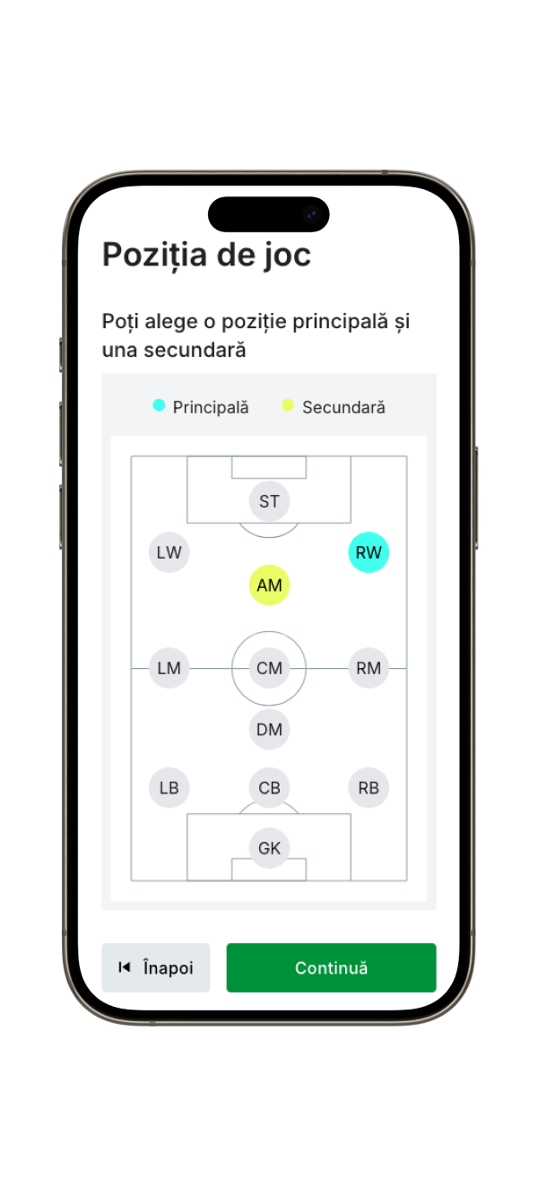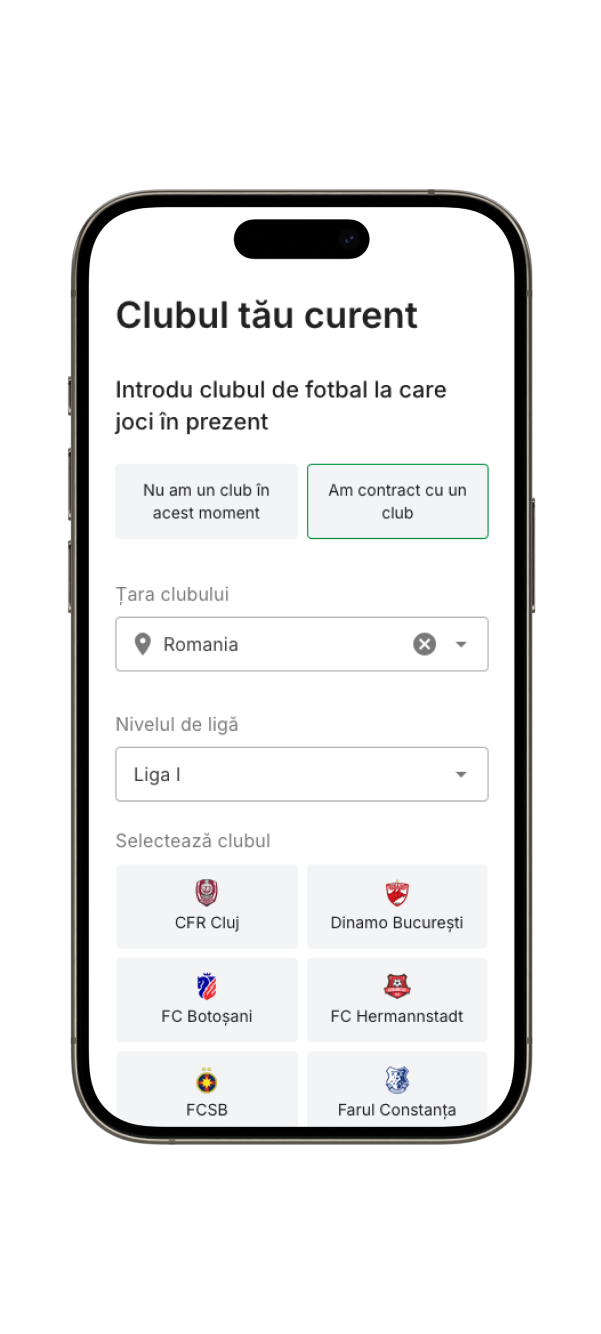 Crează contAbonamentul este necesar pentru ca profillul de jucător să fie vizibil de către cluburi. Crearea contului și completarea profilului de jucător sunt gratuite.